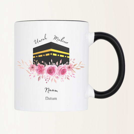 Mok met naam - Umrah Mabroor - Kabaa met bloem