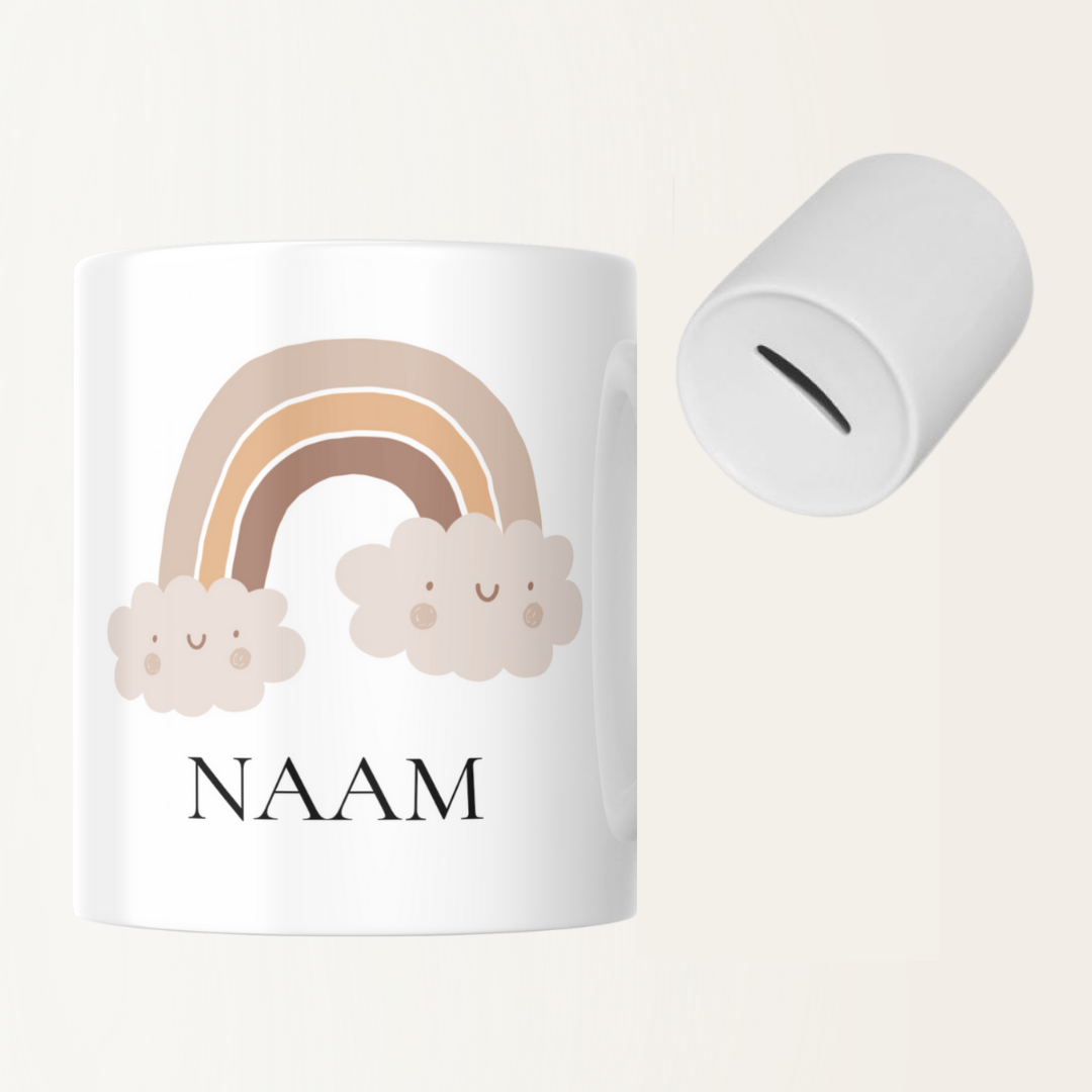 Spaarpot met naam - Regenboog met wolkjes